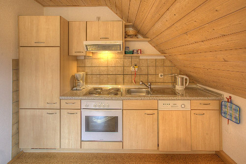 1 Großer Wohnraum mit Küchenzeile (Spülmaschine u. Mikrowelle), Funktionssofa für 2 weitere Schlafmöglichkeiten),