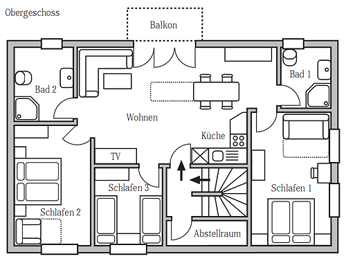 Alle Wohnungen sind gemütlich eingerichtet. Die Küchenzeilen sind komplett mit reichlich Geschirr und allen nötigen Hilfs- und Arbeitsgeräten ausgestattet und verfügen über eine Spülmaschine. In den Wohnzimmern finden Sie immer eine Ess-Ecke und eine gemütliche Sitzgruppe (Funktionssofa für 2 weitere Schlafmöglichkeiten).